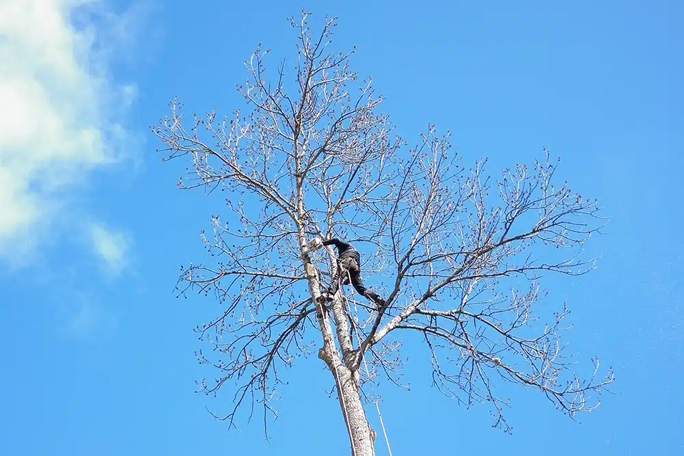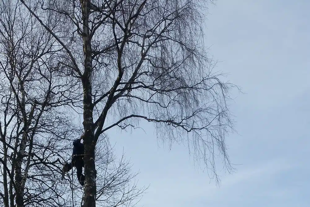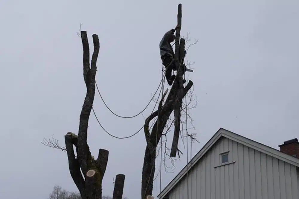 Felling av trær er et krevende og utfordrende fag. Ved felling av store trær nær bygninger så er potensialet for å utøve skade stor. Derfor er det viktig med lang erfaring med denne type arbeid, samt riktig teknikk og utstyr. Ofte må trær plukkes ned bit for bit, og greiner og stamme må kanskje fires ned med tau. Ta kontakt dersom du har et tre du vurderer å fjerne. Vi tar på oss både felling og bortkjøring, evt gjør opp veden for kunde.